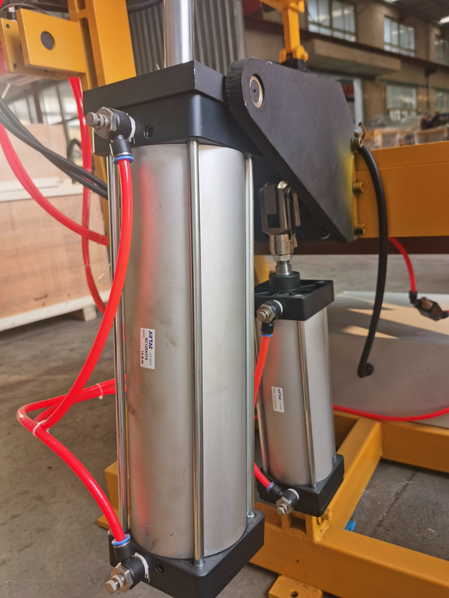 氣動(dòng)模架由底座、上架、載模板、轉(zhuǎn)動(dòng)銷、轉(zhuǎn)動(dòng)連板、氣動(dòng)回路以及控制電路構(gòu)成,采用PLC控制,由氣缸完成開合模及鎖模動(dòng)作。